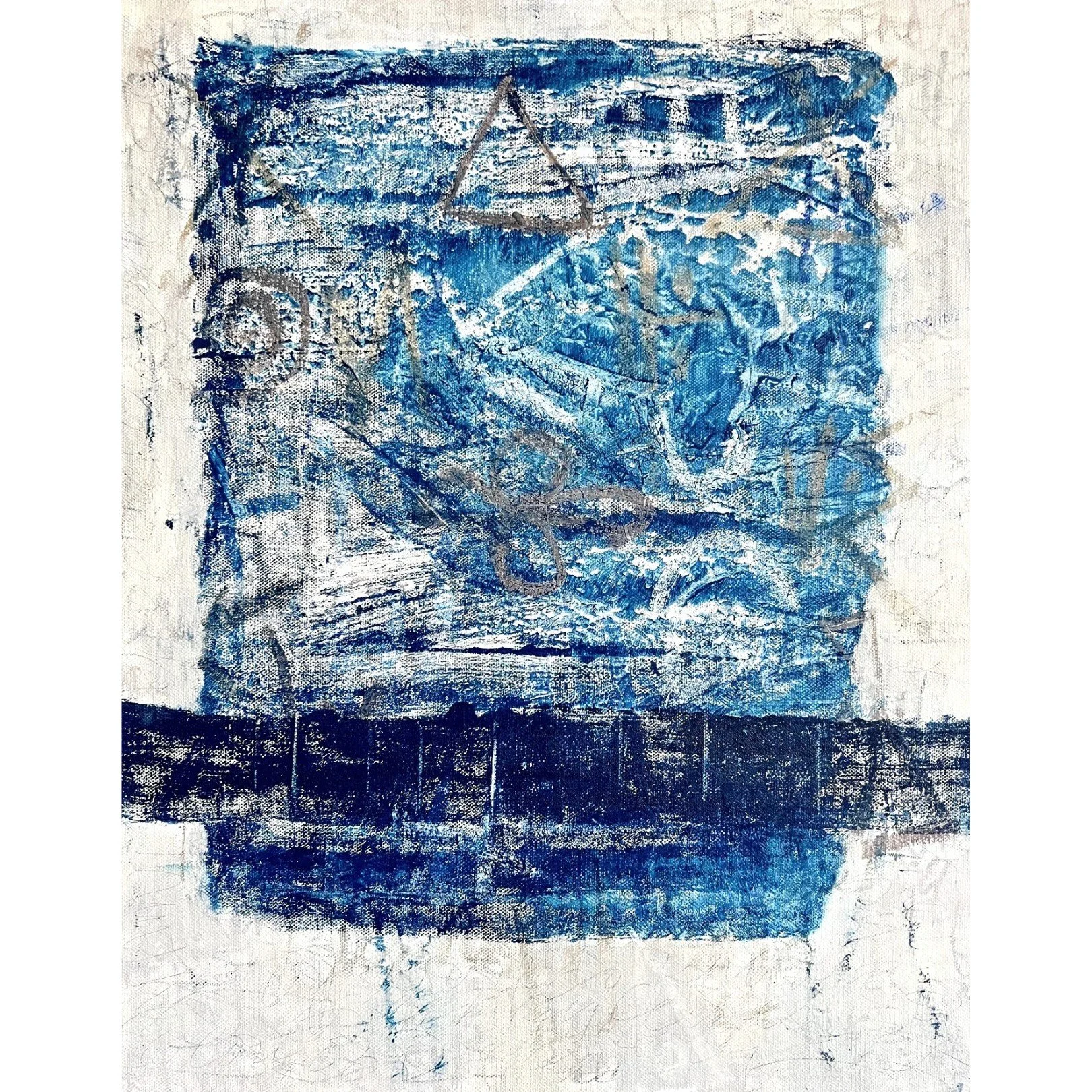 Geometric symbols gather and form a pattern of balance and focus. At the heart of the piece is a recurring motif— the plus sign or cross. Unlike a crucifix, this form holds equal-length arms, a distinction that carries deep meaning. For the artist, the cross form is a symbol of convergence: four arms meeting at a center point, channeling balance, cohesion, and power.